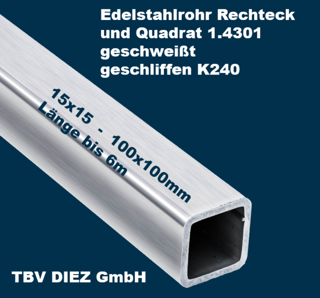 Edelstahl Vierkant- bzw. Rechteckrohr 1.4301 geschweißt geschliffen